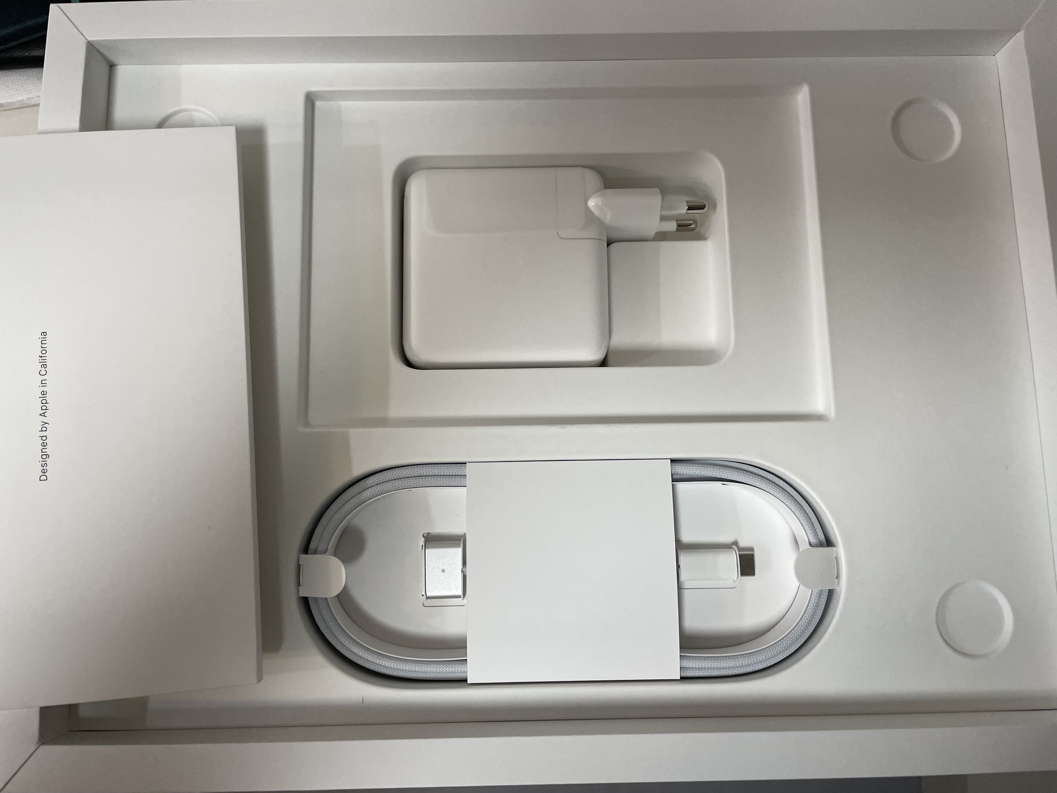 맥북프로 14  박스를 열어보면 심플하게 어댑터와 맥세이프 케이블이 있다.