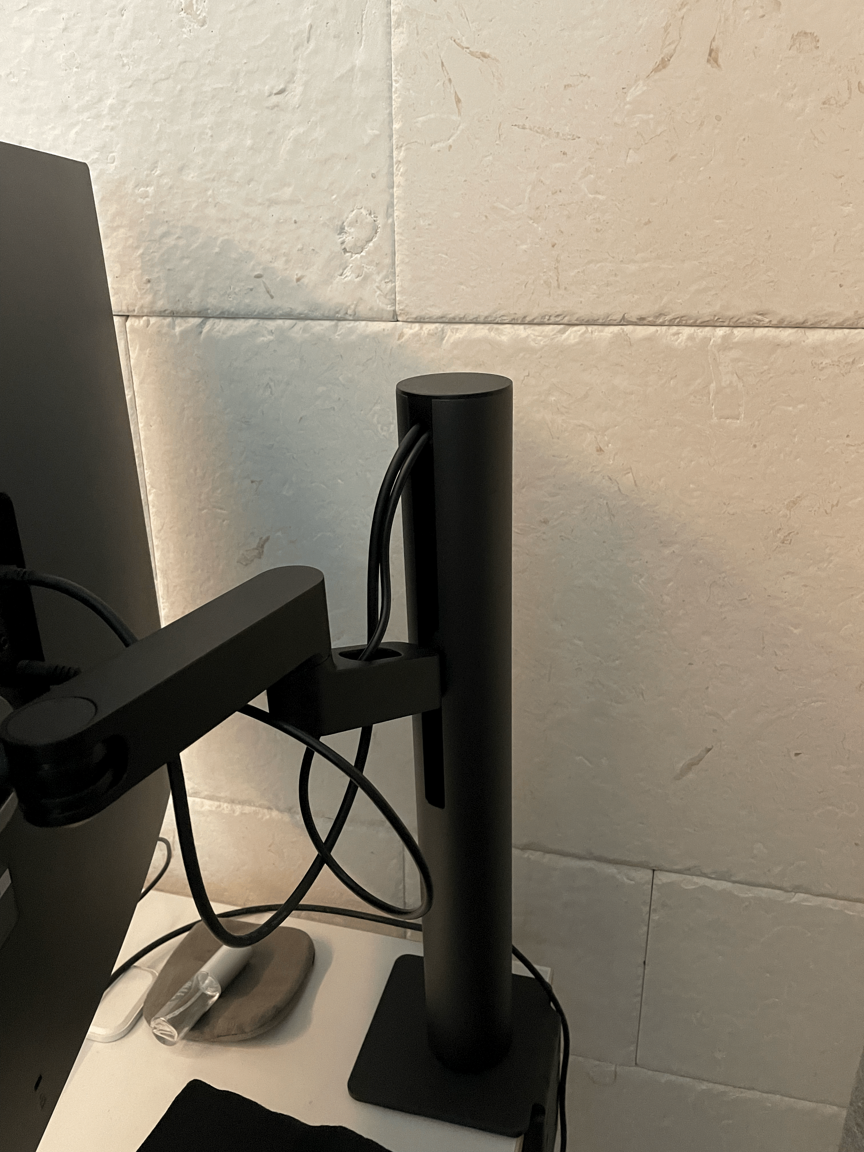- 그리고 스탠드 기둥 안쪽에 선정리를 간편하게 할수 있도록 기능을 지원하고 있어서 책상에 선들이 노출되지 않도록 깔끔하게 정리가능 했다.
