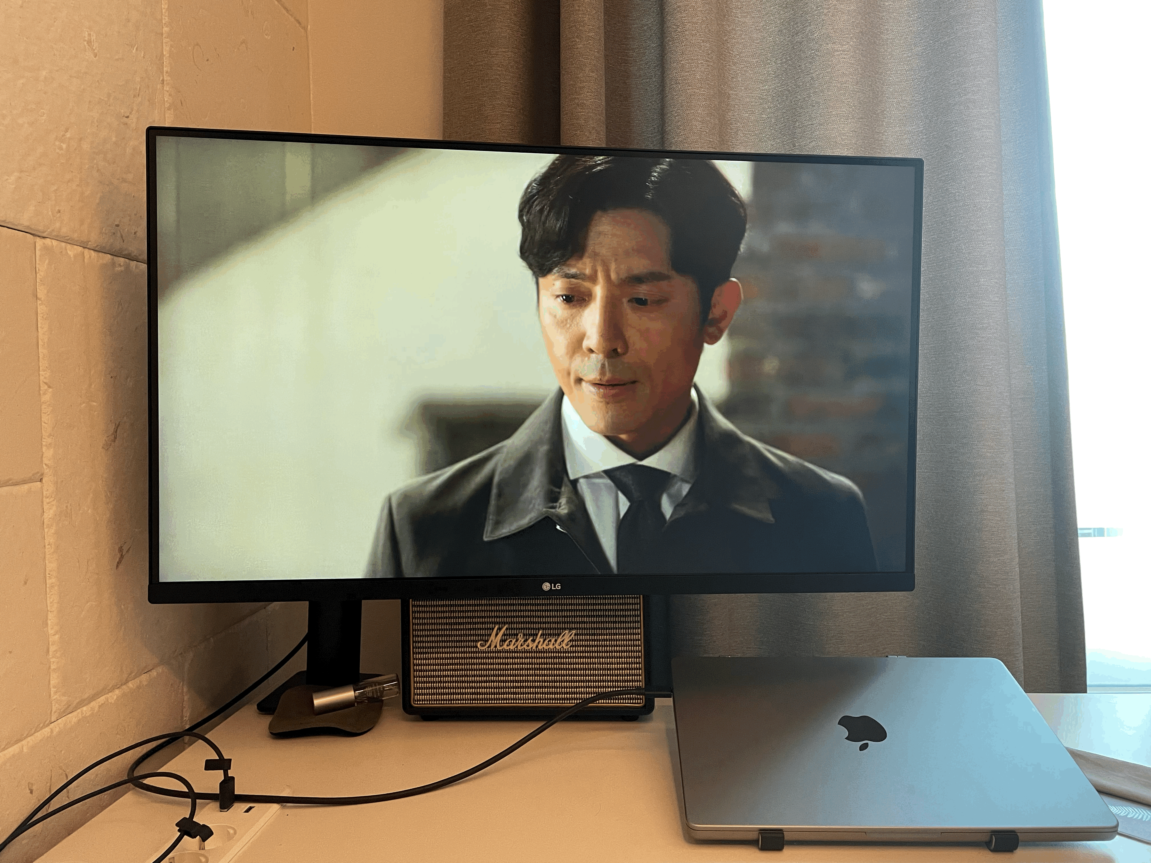 - 최근 핫한 넥플릭스 소년검사도 티비를 누고 거실에서 새로구입한 모니터로 보고 있다. ㅋ