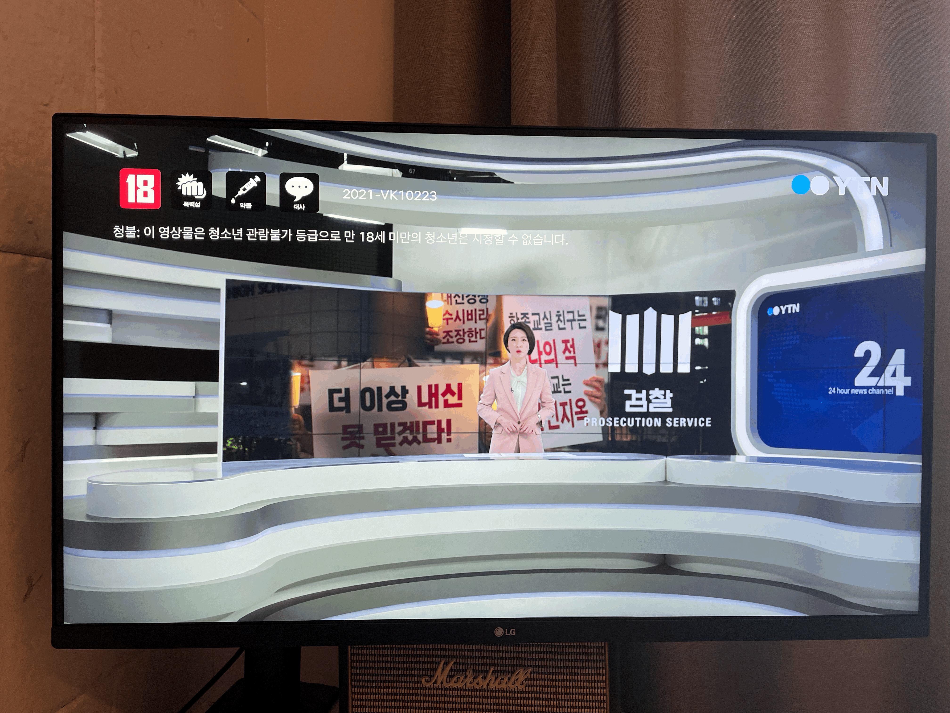 - 너튜브 4K HDR 영상 샘플을 틀은 모습 기존에 사용하던 티비와는 넘사벽의 화질차이를 느낄 수 있었다.