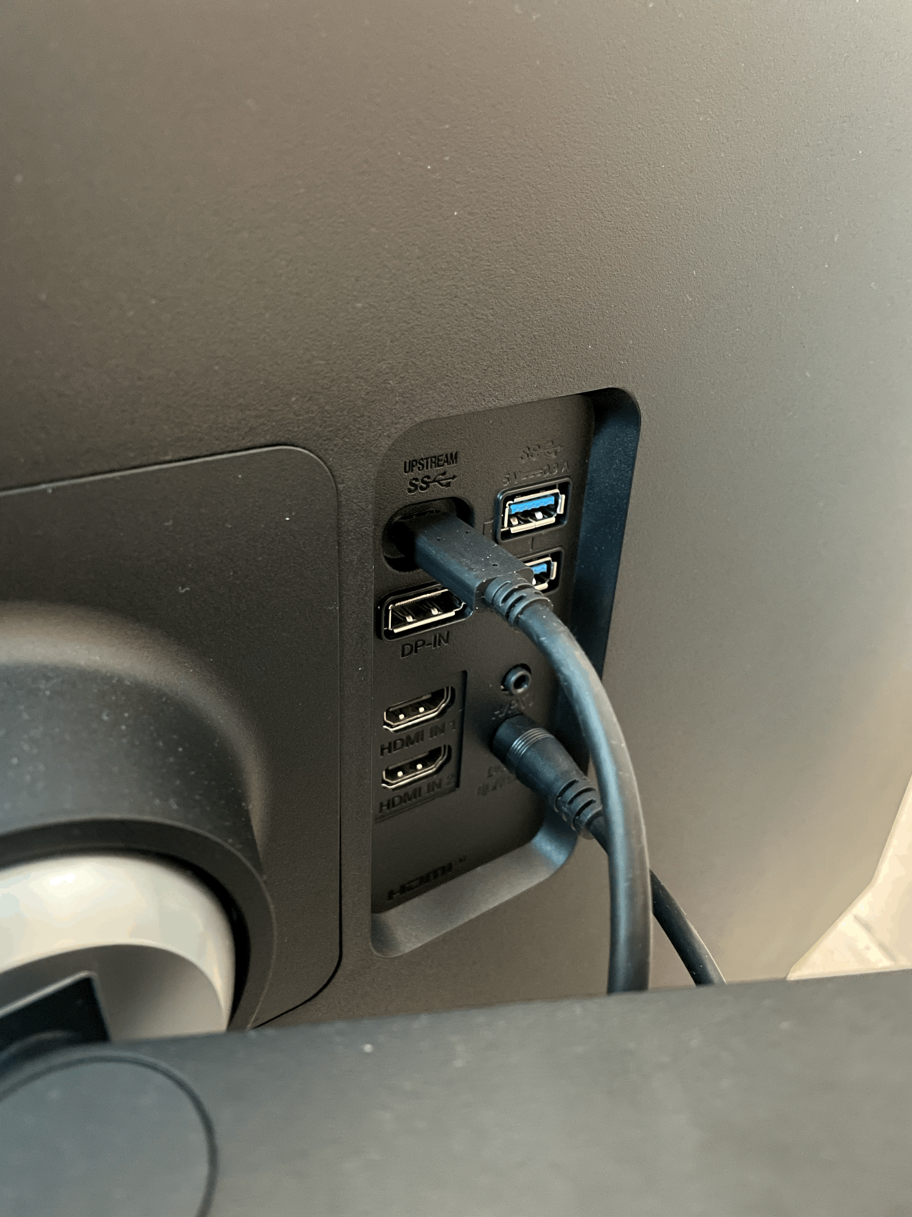 32UN880 - 뒤에 포트는 usb-c 1개, sub-A 2개, DP 1개, HDMI2개 다양한 포트를 지원하고 있다.